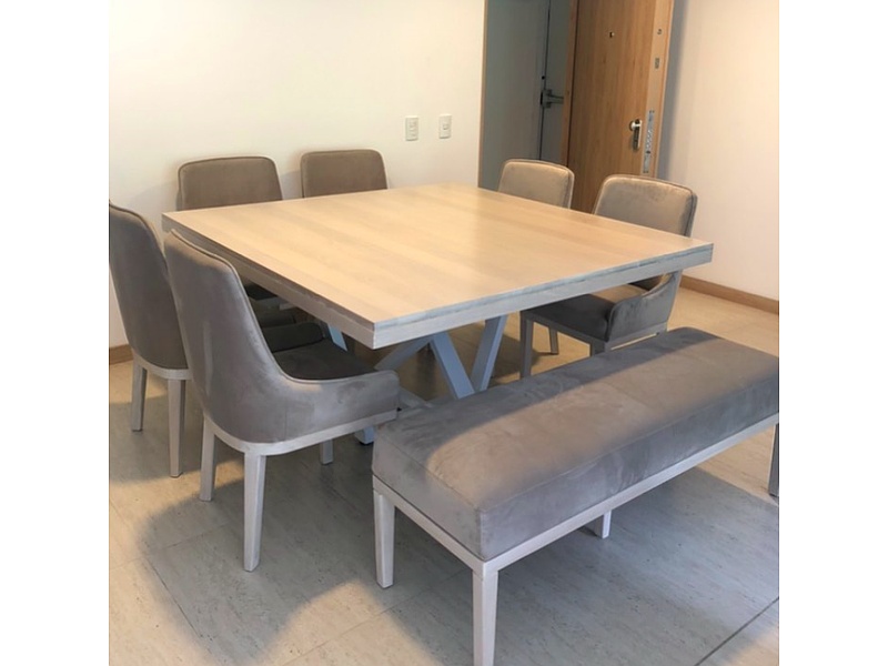 Mesa y sillas en madera roble natural/ acabado Wash.