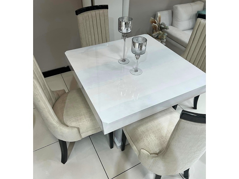Juego de comedor 4 puestos, Sillas tapizadas en tela anti fluido, amigable.