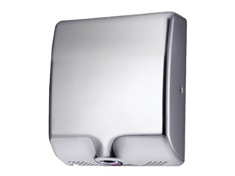 Secador de manos en acero inoxidable, activado por sensor infrarrojo.