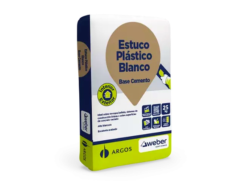 Estuco plástico base cemento con alta blancura, deseado para realizar aplicaciones de acabado arquitectónico sobre revoque, sistemas livianos y concreto vaciado tanto en interior como en exterior.