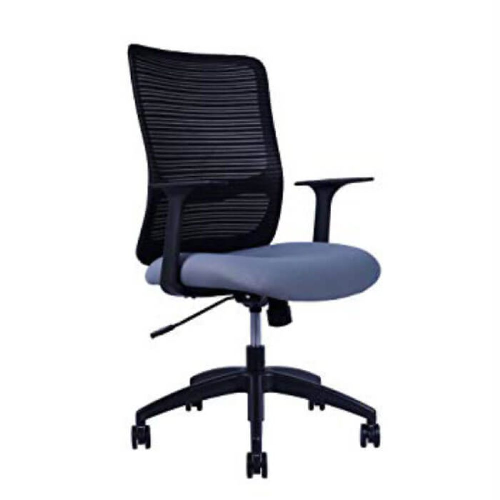 Silla con marco y patas Negras, brazos ajustables en altura. Tapizado silla Gris Oscuro y espaldar en malla negra. Soporte Lumbar. Regulacion de altura en la silla. Dos posiciones de bloqueo en el espaldar.